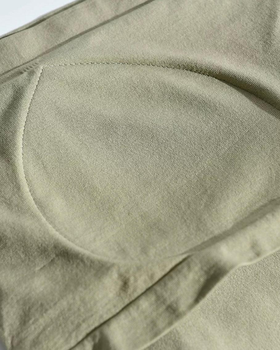 加絨的褲子裁剪時會有一定程度的浮絨沾在褲子,拿到後正反面多清洗幾次,晾曬到半乾的時候拍打褲子就會掉了 。