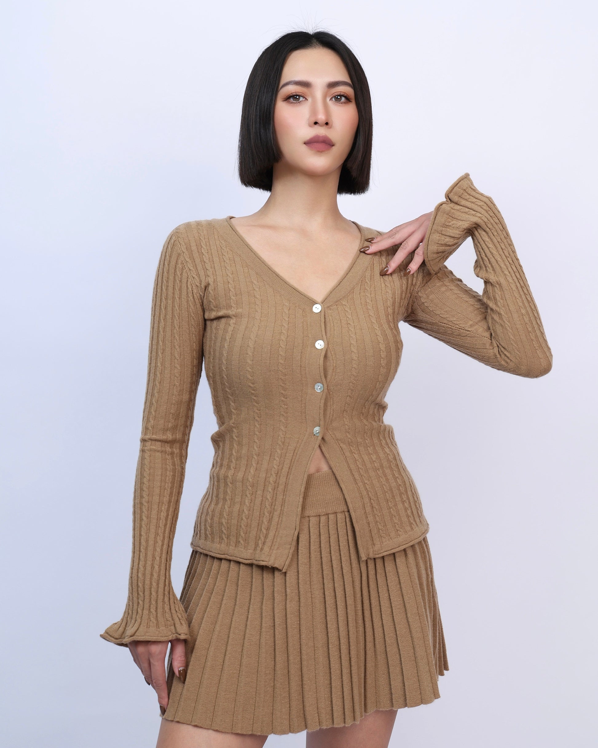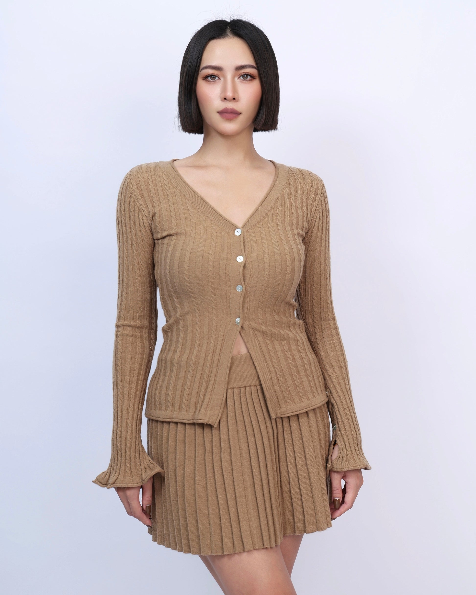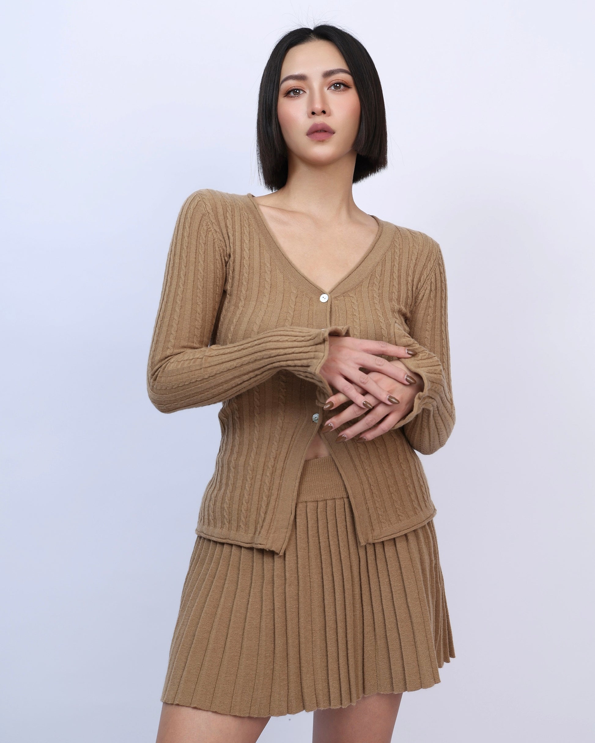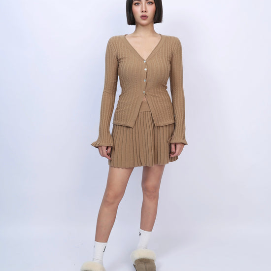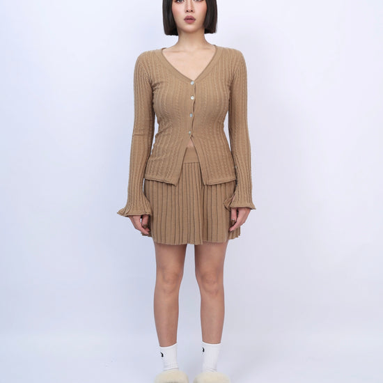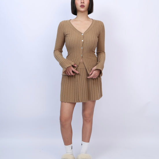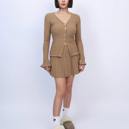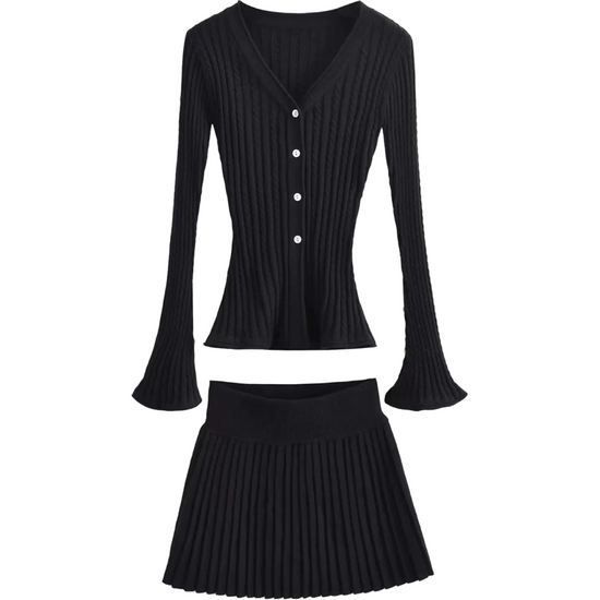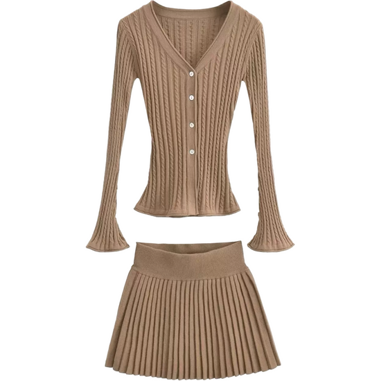 絕美麻花針織百褶裙套裝