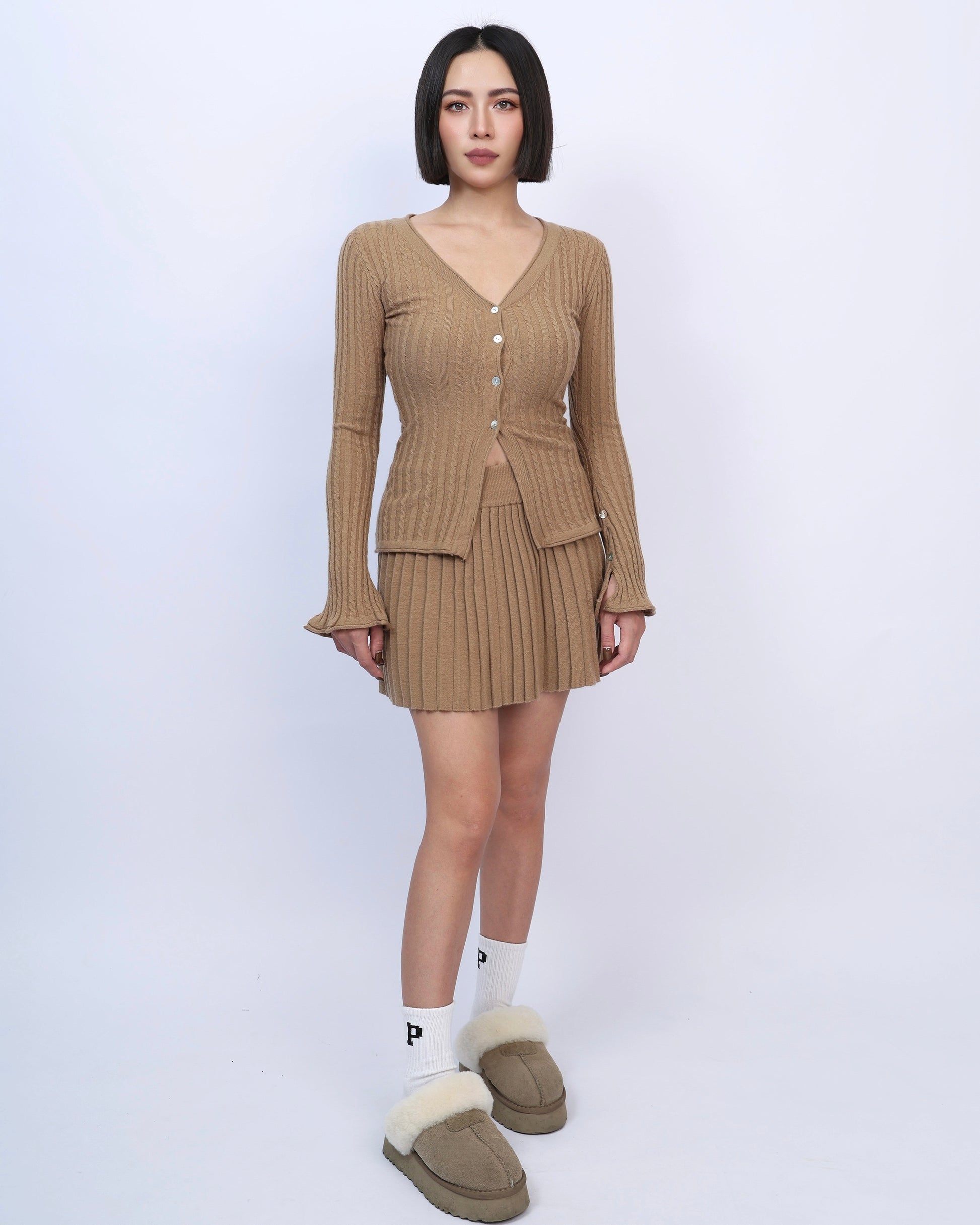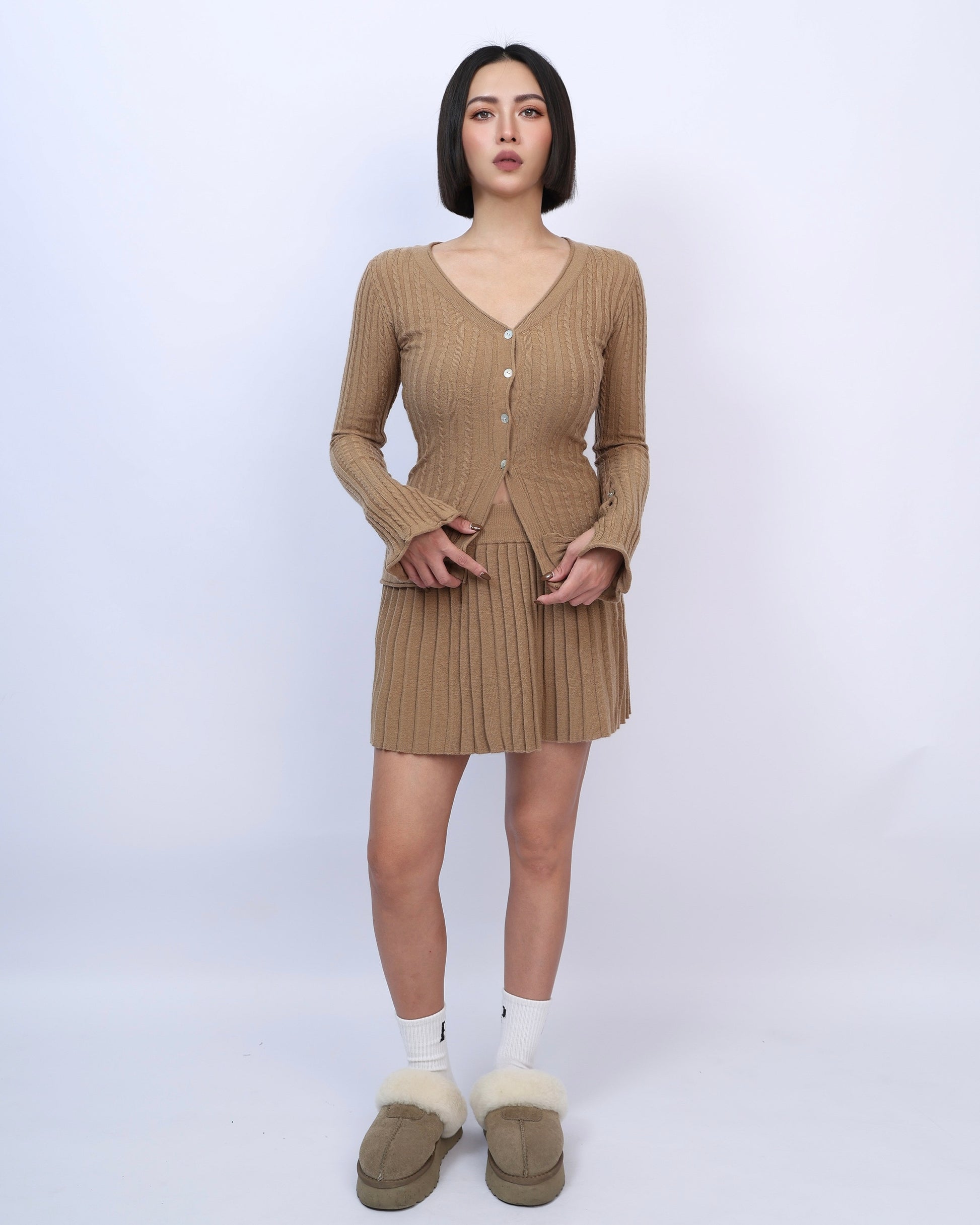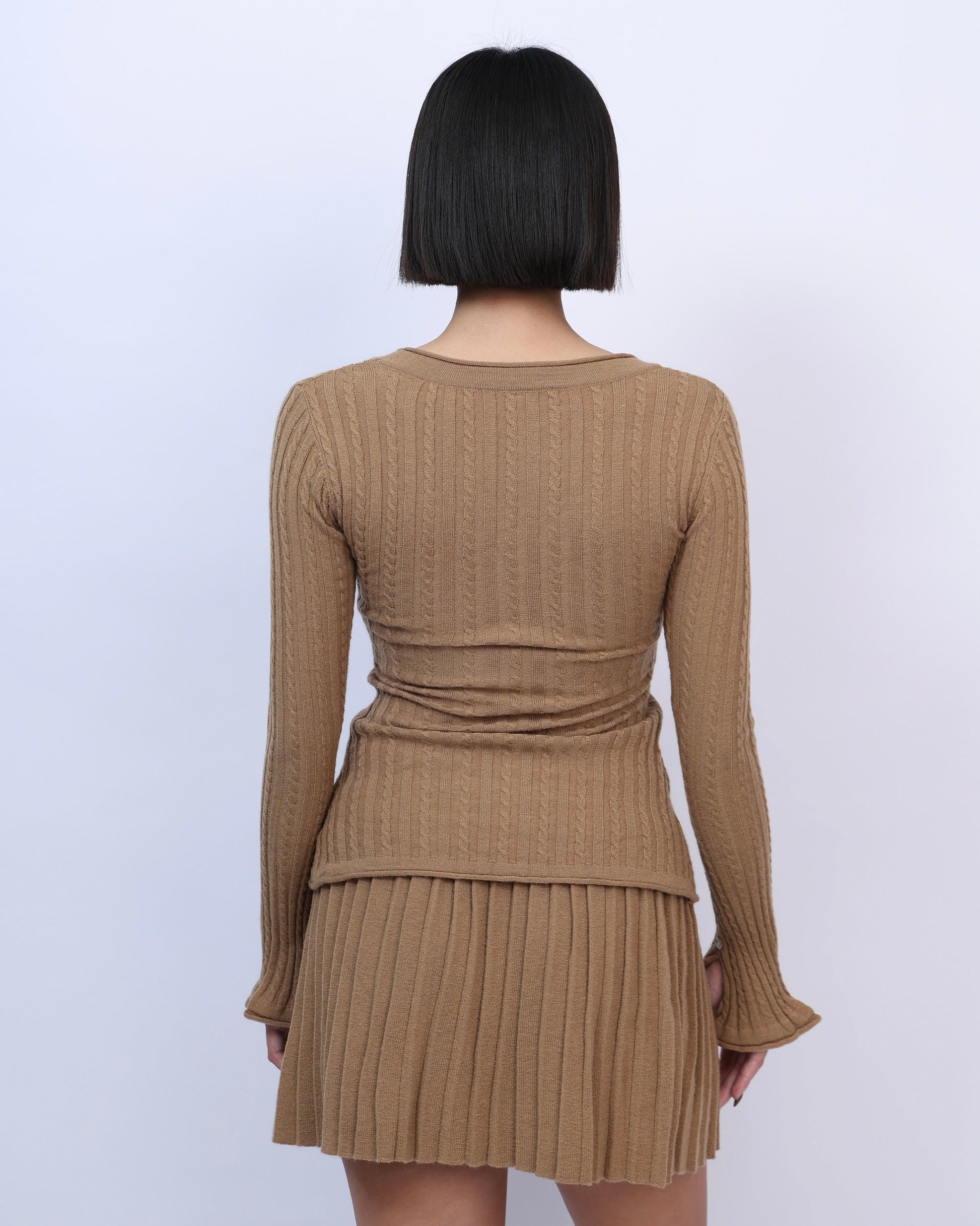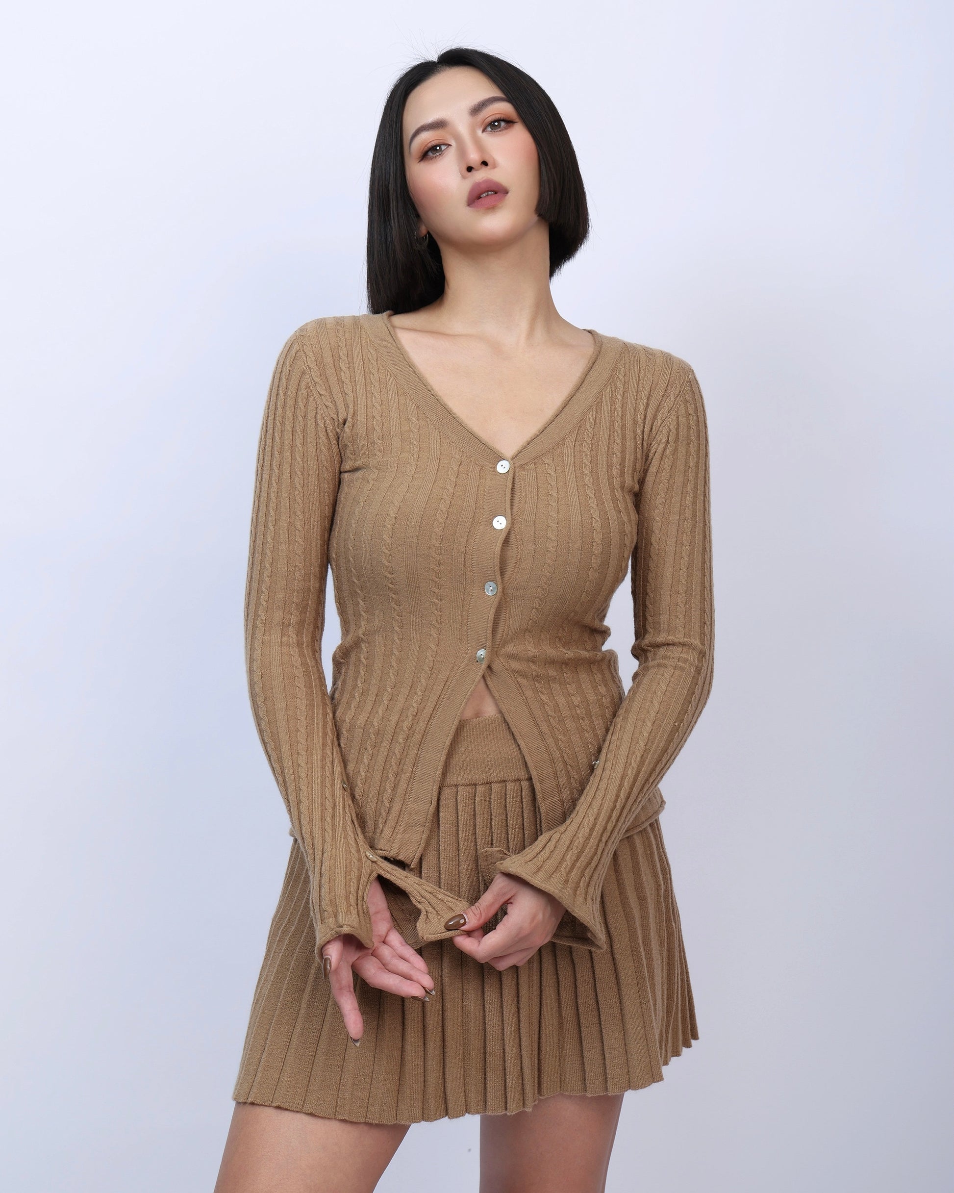 絕美麻花針織百褶裙套裝