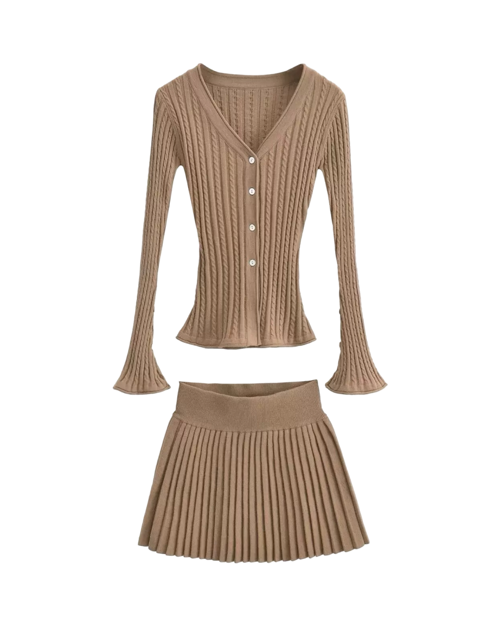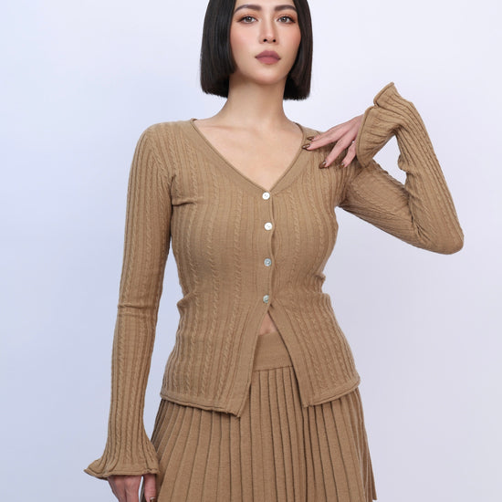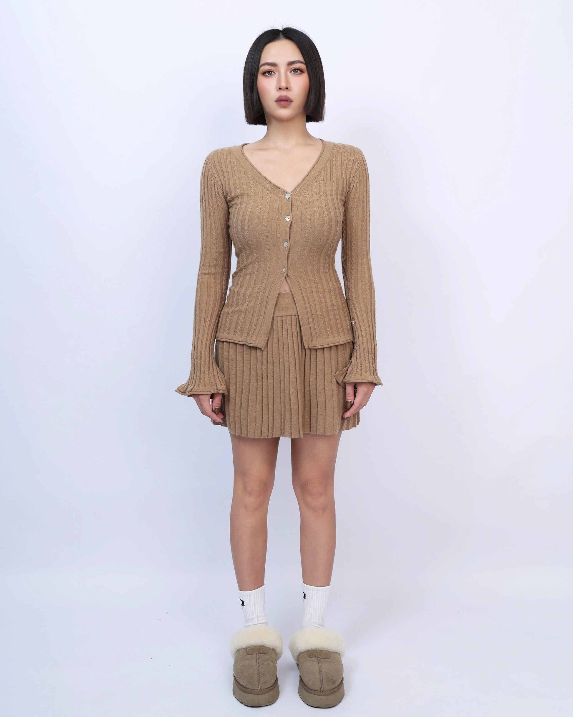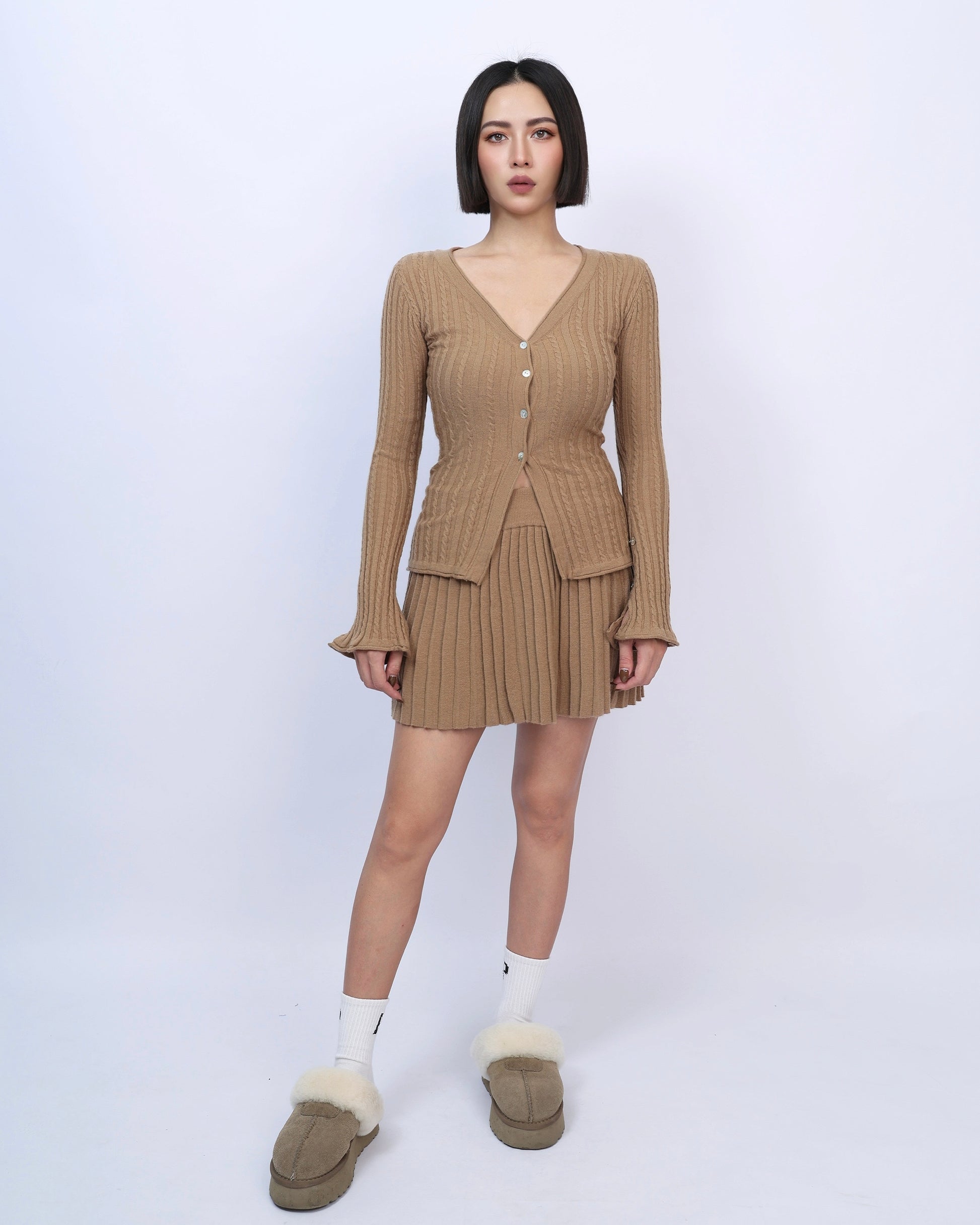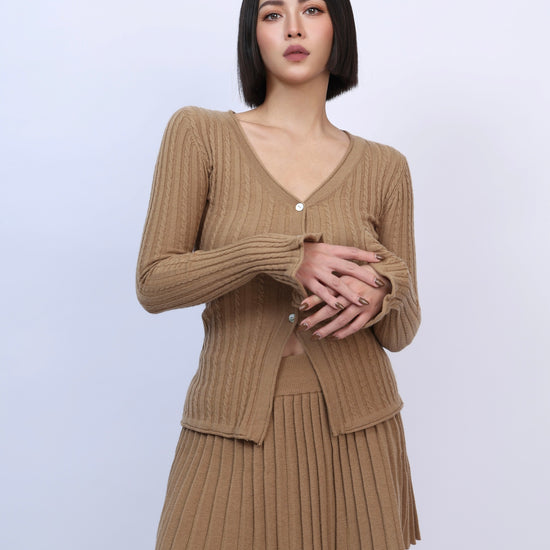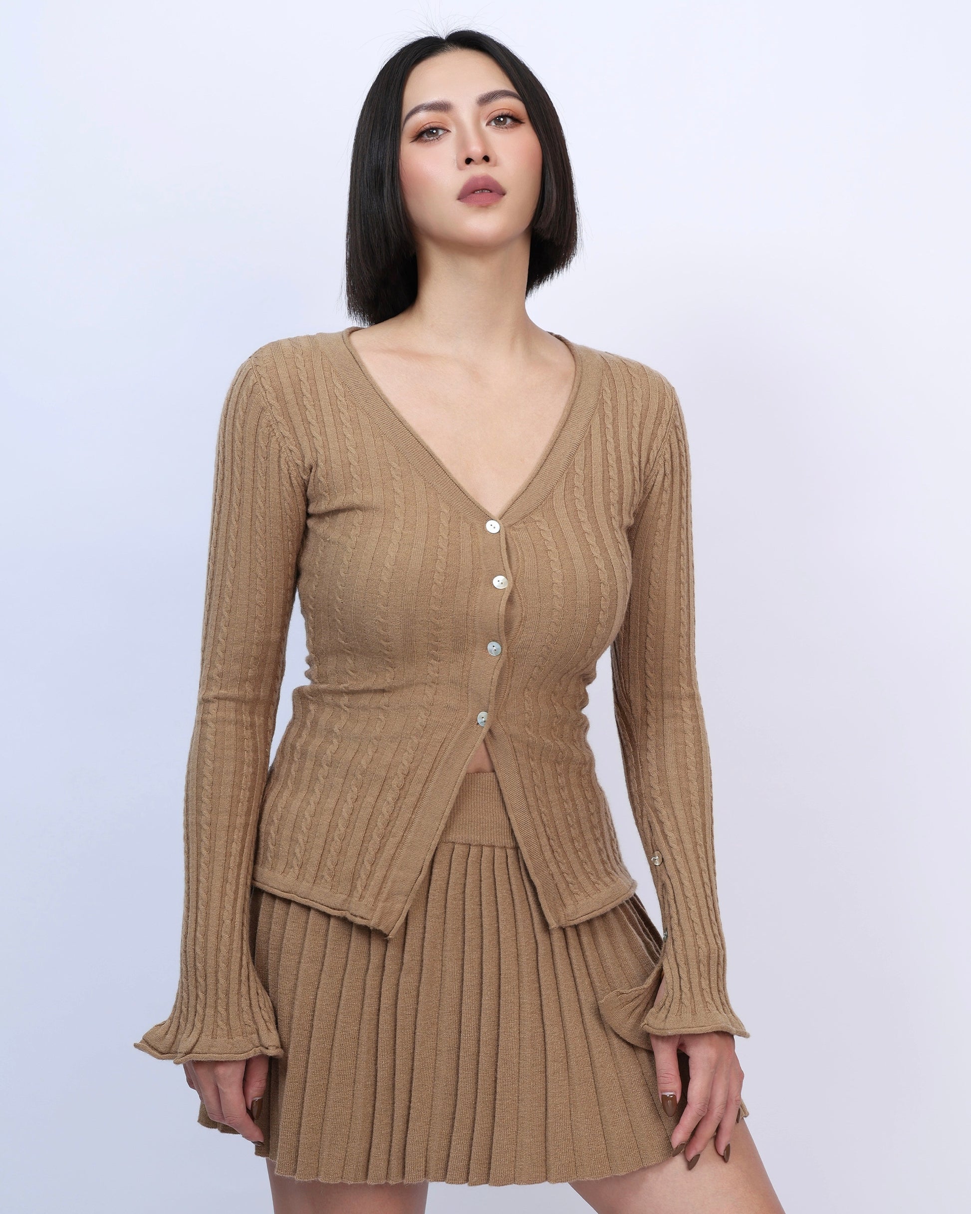 絕美麻花針織百褶裙套裝