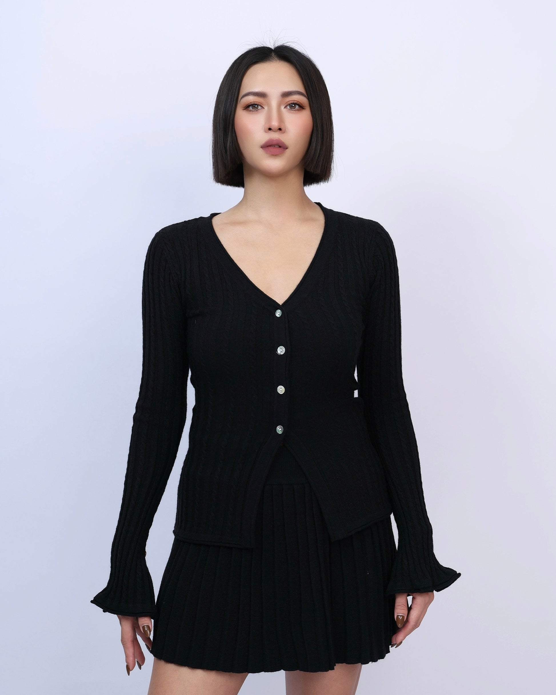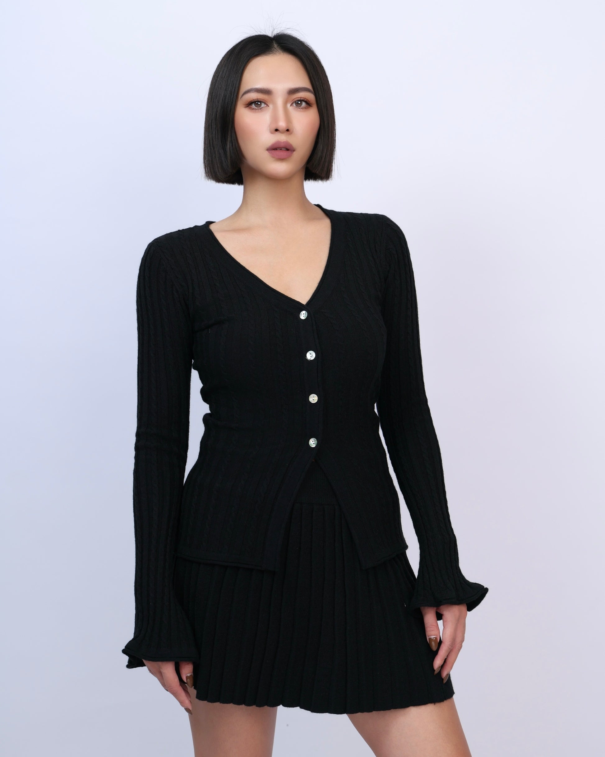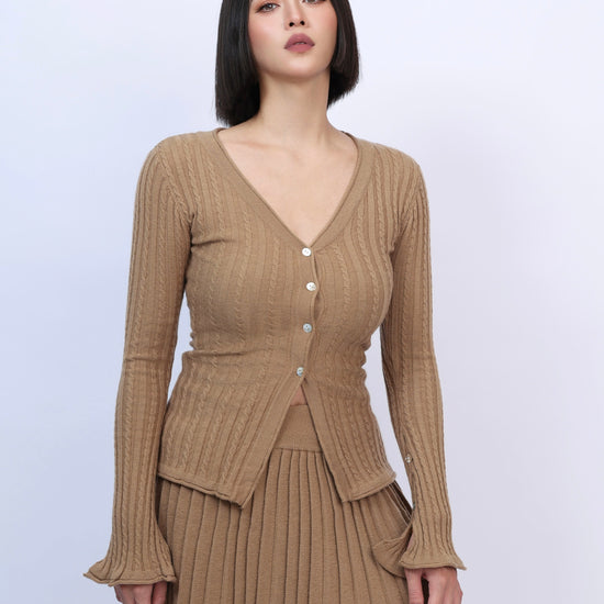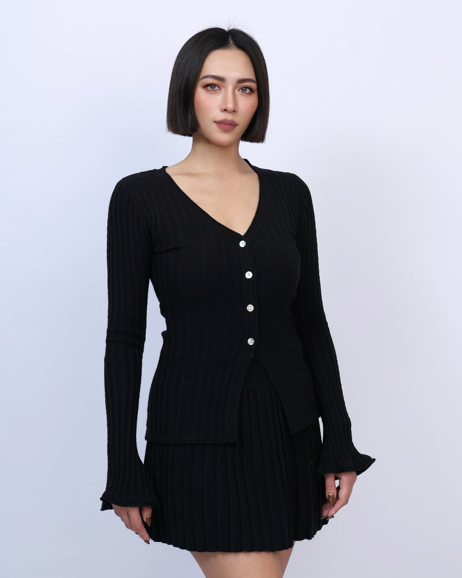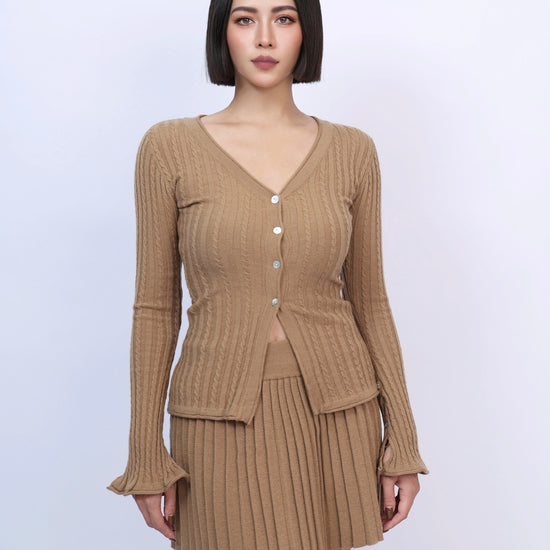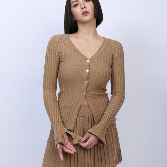 絕美麻花針織百褶裙套裝